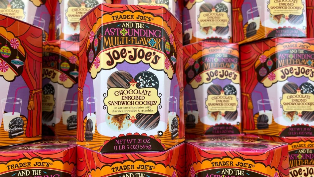 A box of chocolate cookies isn’t just a box of chocolate cookies at Trader Joe’s. Instead, it’s marketed as “Astounding Multi-Flavor Joe Joe’s” and packaged in a unique hexagonal box designed to make the cookies look like they’re headlining a circus act.