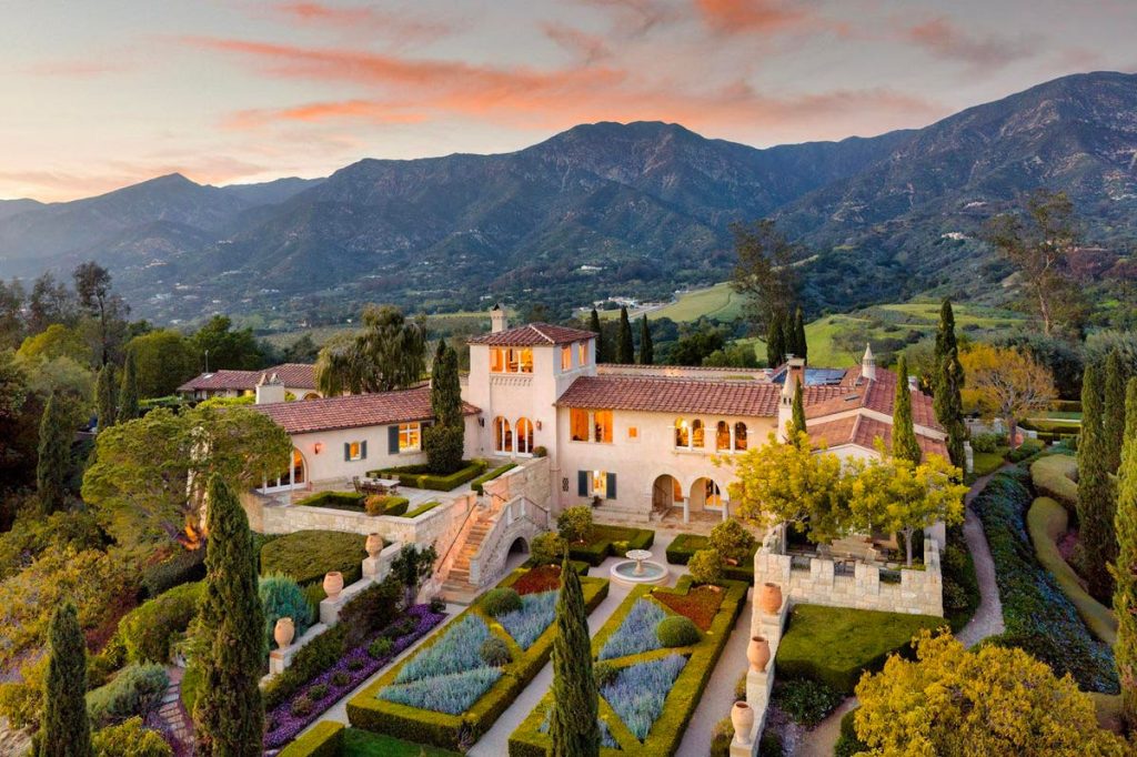 Yet the location is not coastal Liguria but Montecito, an affluent community in Southern California known as the American Riviera. Enjoying panoramic vistas of the ocean and sheltering mountains, the nearly 22-acre estate is surrounded by colorful formal gardens that give way to an avocado orchard.