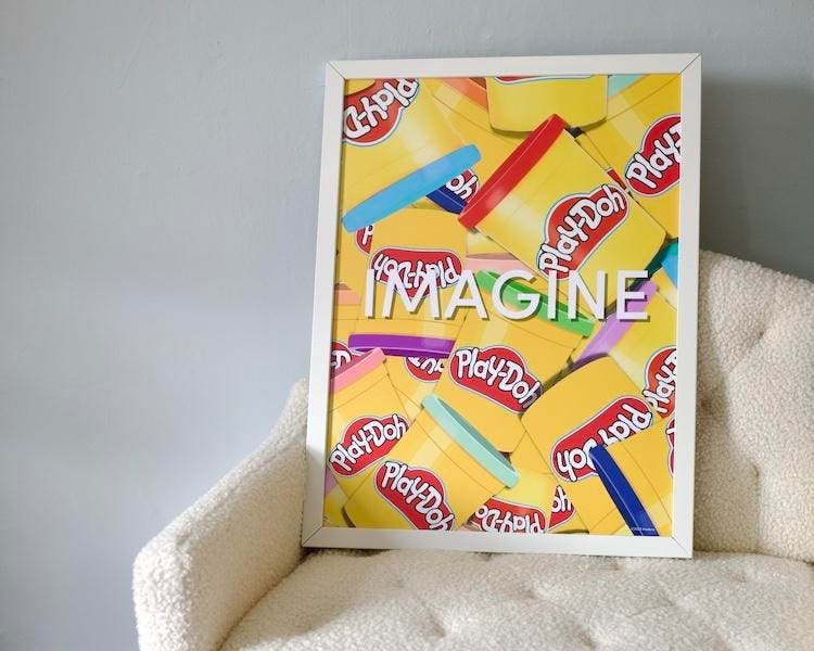 These pieces make the perfect addition to a kid’s room or even for a toddler who may be enjoying the classic toy for the first time. With bold contrasting shades, these designs embrace Play-Doh’s magical quality. Choose from framed prints, canvases, posters, and a cutting board ideal for adding a pop of color to any kitchen.