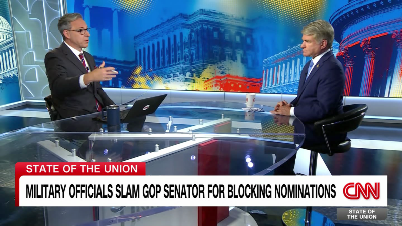 House Foreign Affairs Committee Chairman Rep. Michael McCaul tells CNN’s Jake Tapper that Republican Sen. Tuberville’s decision to block hundreds of military nominations over the Pentagon’s travel policy on abortion is “a national security issue.”