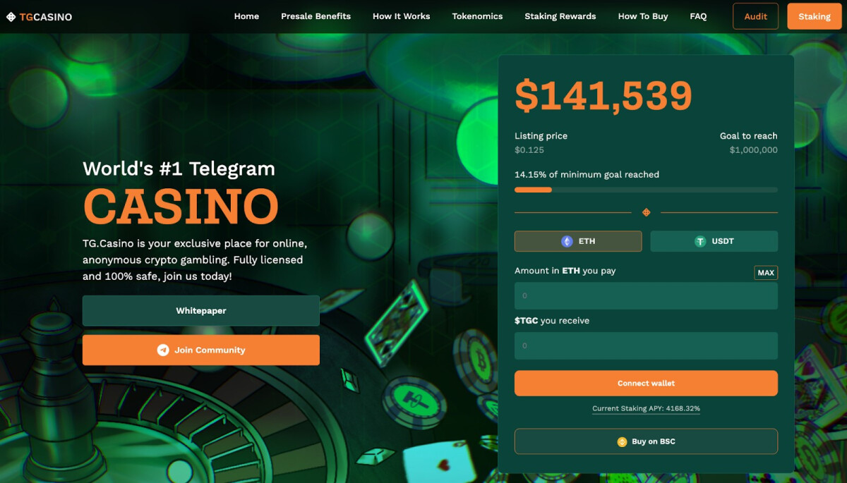 Thursday, September 21st, 2023 – TG.Casino gaming crypto presale launches today and has already raised $140,000 in minutes – $TGC token looks set to be the next Telegram bot token to explode.