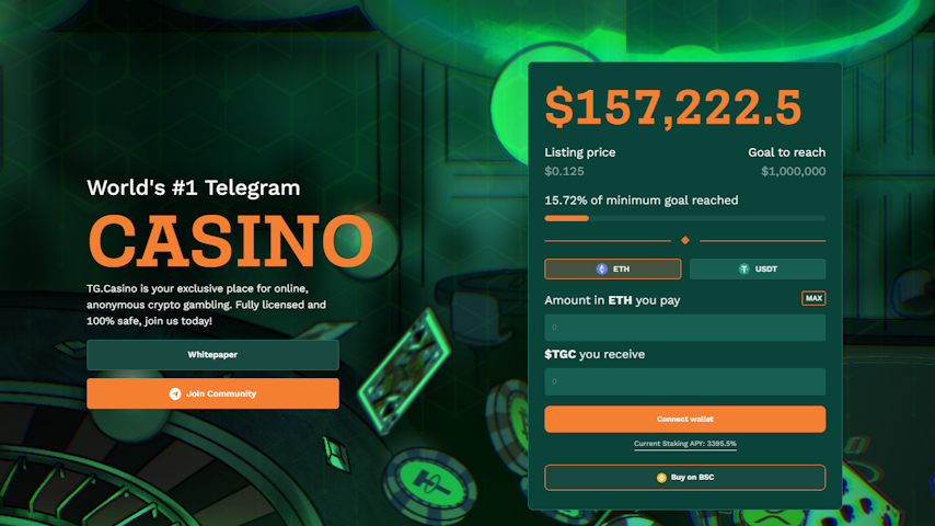 TG.Casino ($TGC) is a fully licensed Telegram casino. This new presale cryptocurrency offers huge staking rewards and offers access to various casino games and NFT rewards.