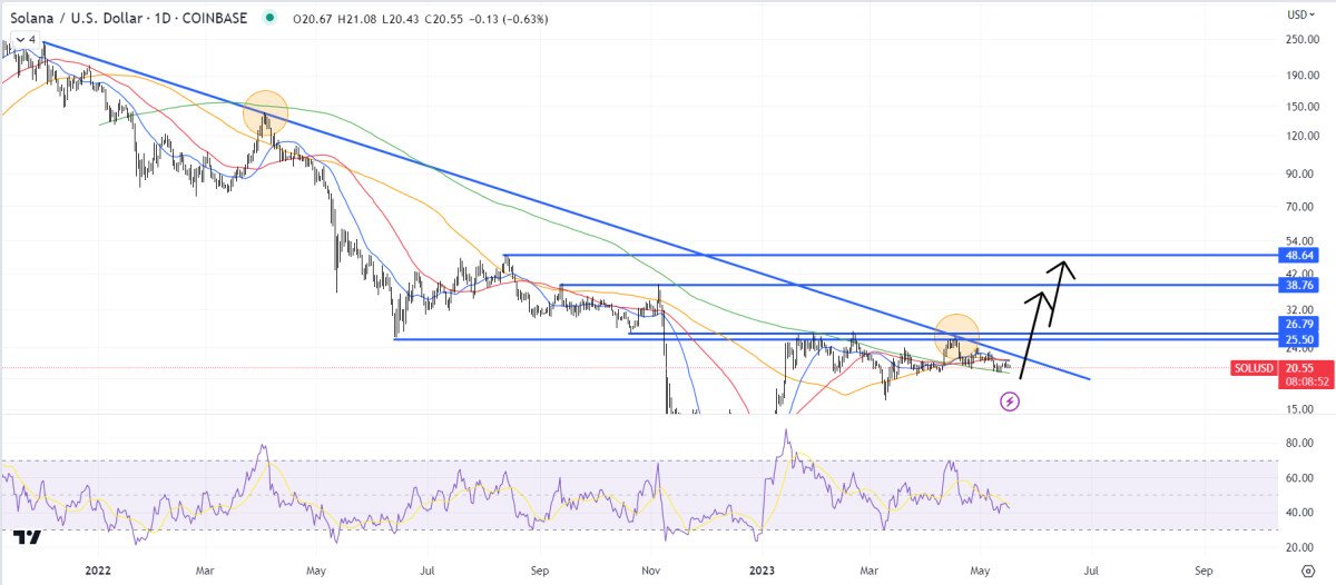 A break above this long-term downtrend could vault the SOL price above the significant $27-28 resistance area and open the door for gains towards the $39 and $48 resistance zones.