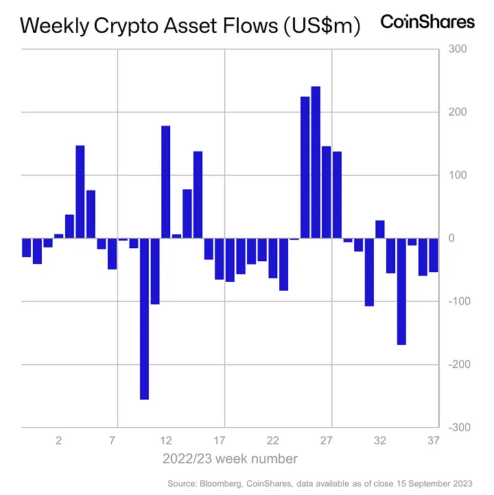 Cryptocurrency investment products recorded outflows for the sixth consecutive week with market leaders Bitcoin (BTC) and Ethereum (ETH) leading the pack.