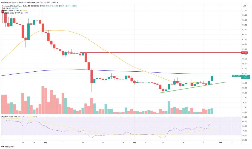 COMP is also up by 11.5% in the past week and by 6% in the last 30 days, with the token also having gained by 39% since the beginning of the year.