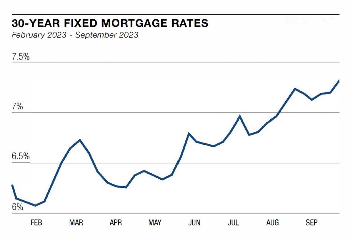 First, of course, is the rise in interest rates. According to Freddie Mac, the cost of a 30- year fixed rate $300,000 mortgage, which stood at 6.09% at the beginning of February, has soared as of Thursday September 27 to 7.31%. This increase, which reflects the Fed- eral Reserve’s ongoing effort to tame inflation, impacts real estate markets in multiple ways. Most obviously, it inhibits buyers: loans which could be had for 2.75% in 2021 today cost over 4.5% more! Many first time buyers simply cannot afford the huge incremental cost.