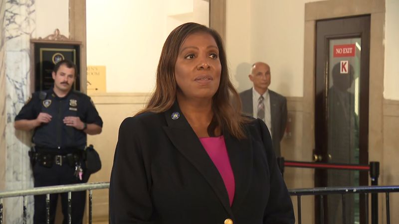 Appearing outside the courtroom where former President Donald Trump has railed against her for three days, New York Attorney General Letitia James fought back, calling Trump’s attendance a “political stunt.”