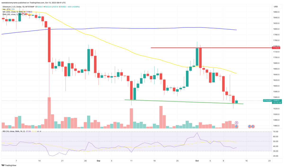 Ethereum has dipped again today, with its fall to $1,550 representing a 0.5% decline in 24 hours and a 5% drop in a week that has been largely negative for the cryptocurrency market.