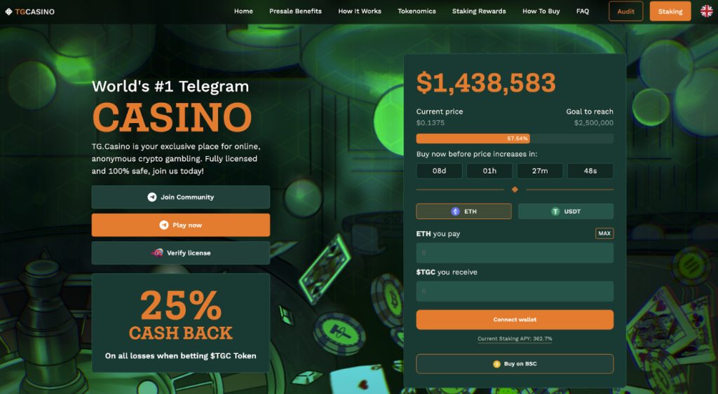 Although $TGC is still in presale its casino is already up and running. $TGC is the native token of the platform and the presale will fund development and marketing.